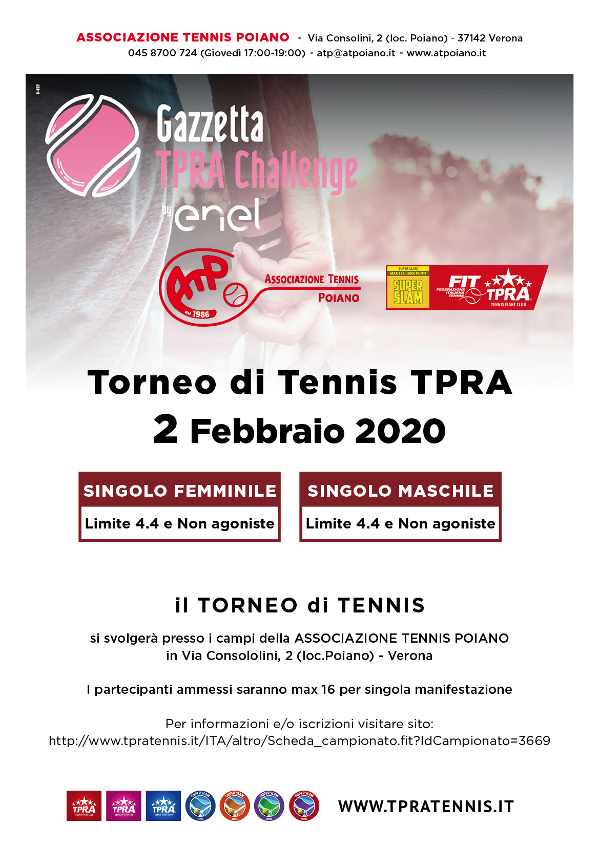 Troverete informazioni aggiornate con tabelloni e orari sul sito internet della associazione tennis poiano (www.atpoiano.it) e sulla pagina facebook (https://www.facebook.com/tennis.poiano.vr)