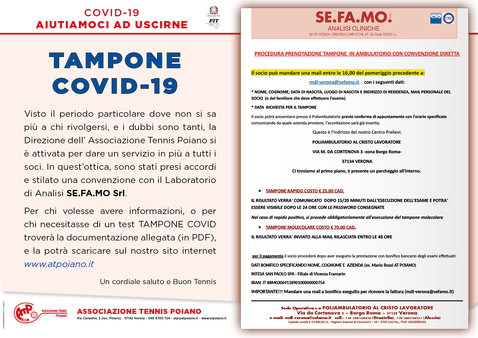 Visto il periodo particolare dove non si sa più a chi rivolgersi, e i dubbi sono tanti, la Direzione dell’ Associazione Tennis Poiano si è attivata per dare un servizio in più a tutti i soci.