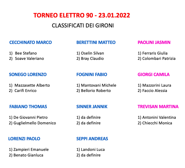 - i Classificati per entrare alla fase del Tabellone Principale
