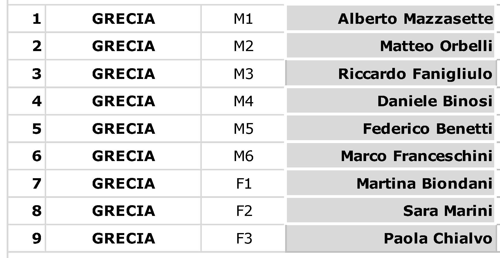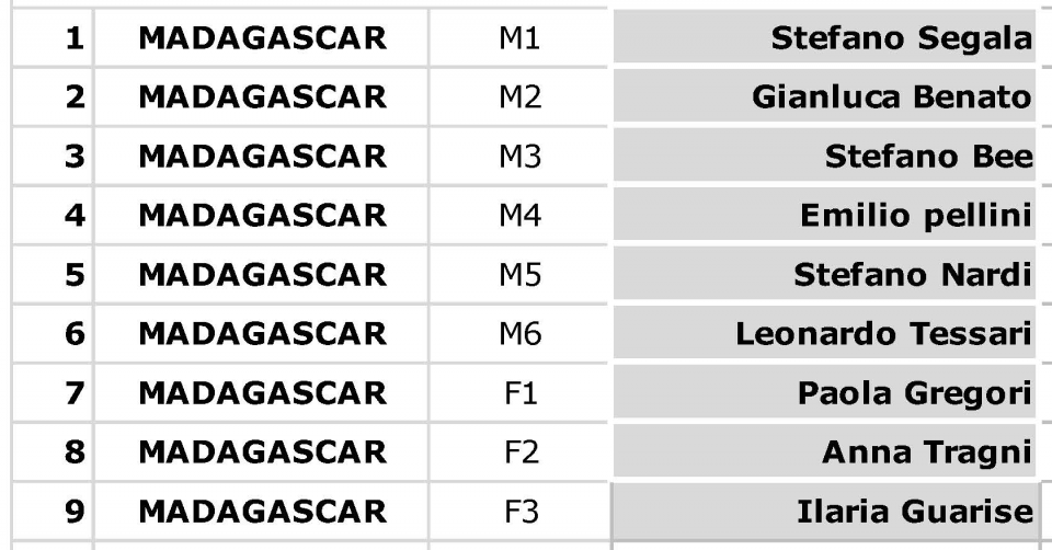 Ecco la composizione delle 6 squadre (9 atleti ciascuna) e la lista delle riserve: